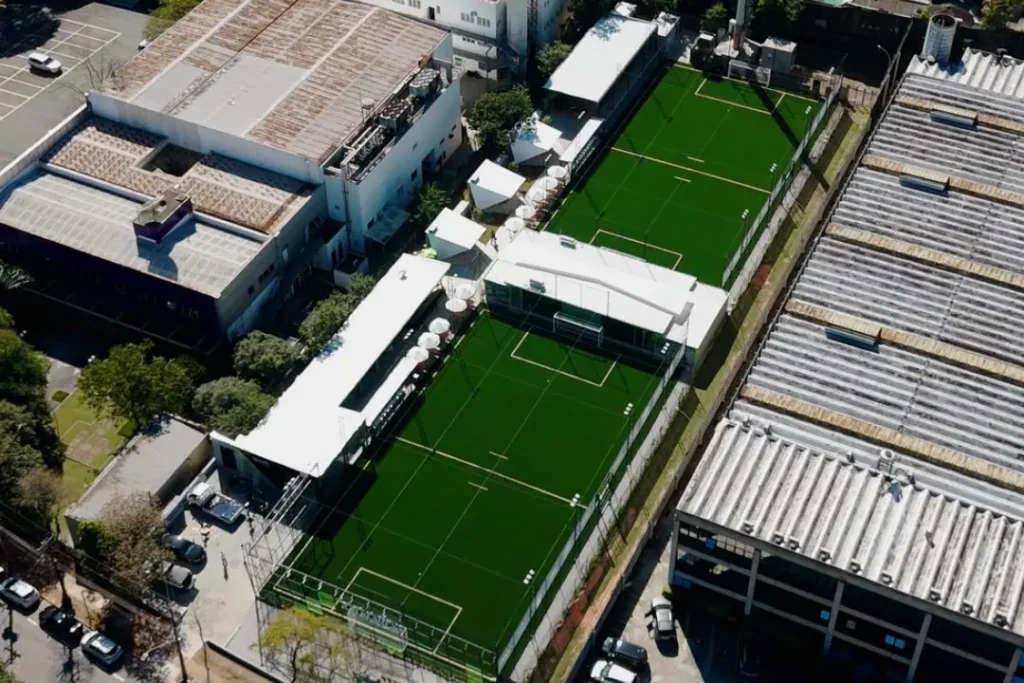 Esqueça tudo o que já viu e ouviu sobre quadras de futebol.