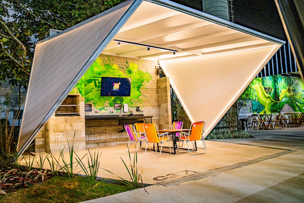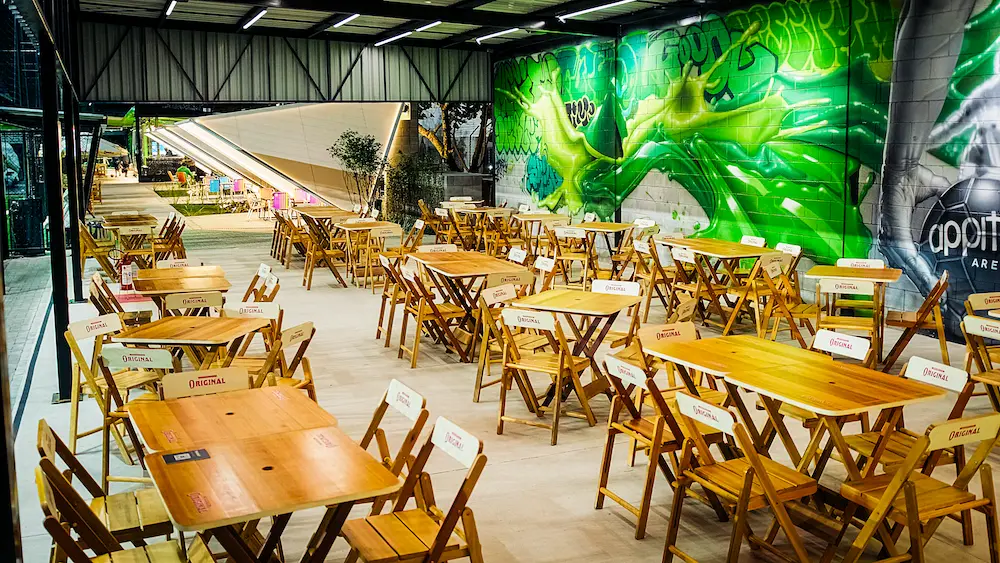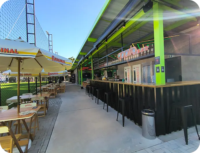 Espaços reservados e equipados para o pós-jogo ideal ou uma confraternização inesquecível. Cada churrasqueira conta com mesas, cadeiras, geladeira, TV, Wi-Fi, grelhas, espetos e utensílios de churrasco — tudo pronto pra resenha começar.
